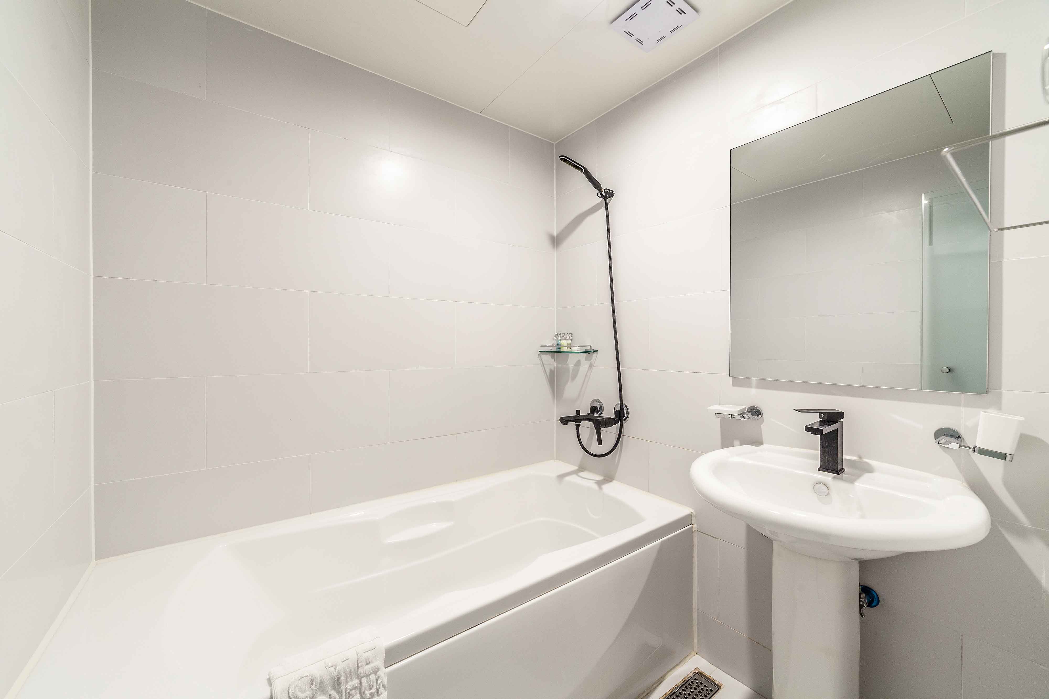 욕실 비품 치약셋트(투숙인원기준), 바디로션, 헤어컨디셔너, 샴푸, 바디워시, 바디스폰지(투숙인원기준), 비누, 레이디셋트, 머리빗, 수건(페이스/바디), 바디타월, 면도기